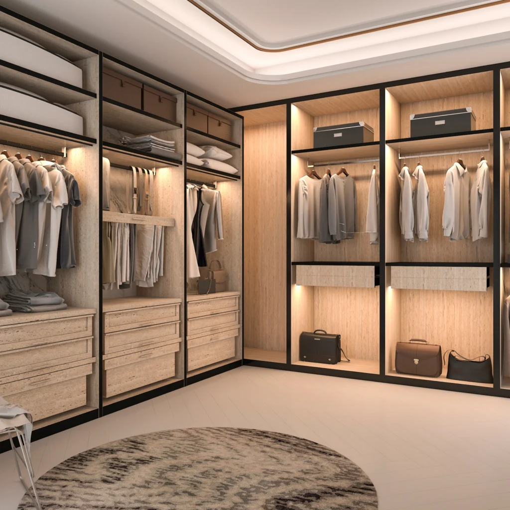 Our exclusive profile wardrobes combine modern design with unmatched functionality. Whether you prefer sliding doors, hinged openings, or open wardrobes, we craft storage solutions that blend seamlessly into your interiors. Using premium aluminium profile systems, soft-close mechanisms, and customizable shelves, our wardrobes are designed for durability and style. We offer choices in glass finishes, laminates, PU coats, and mirror options. Each design is space-optimized and built around your lifestyle — whether it’s for compact urban bedrooms or spacious walk-ins. With Keshav Home Interiors, every wardrobe becomes a smart, sleek, and clutter-free addition to your personal space.